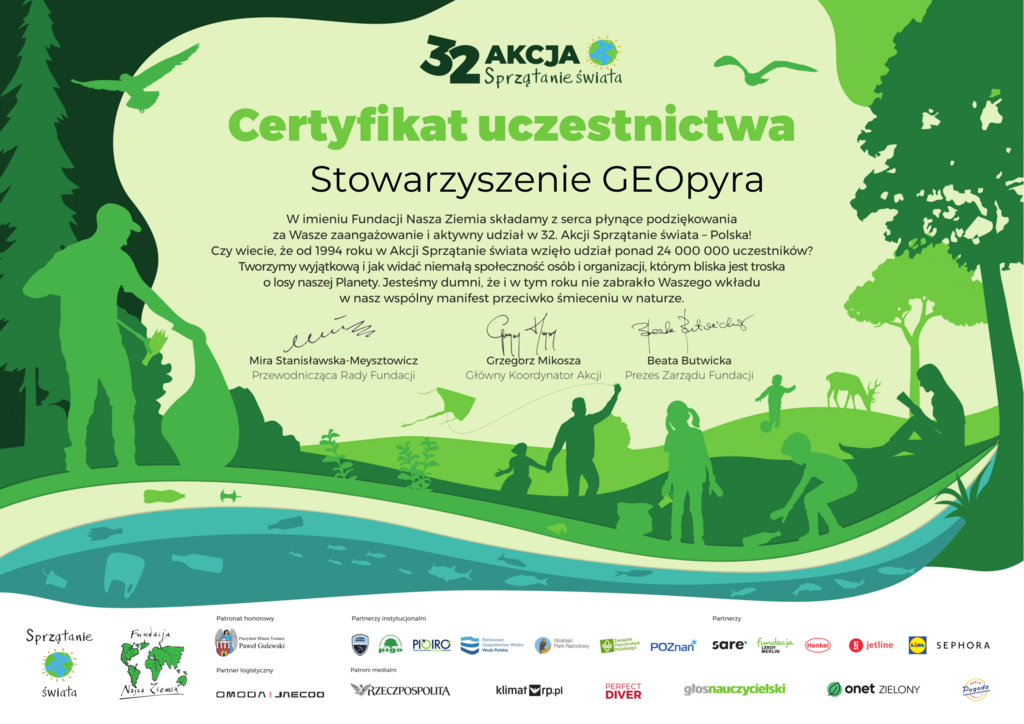 Dzięki dużej otwartości na współpracę, nasze stowarzyszenie blisko kooperuje z Wydziałem Gospodarki Komunalnej, organizując liczne akcje ekologiczne na terenie miasta. Zachęcamy do zapoznania się ze źródłami o wsparciu oddolnych akcji sprzątania na stronie UMP. W 2025 GEOpyra zebrała łącznie 6.5 ton odpadów!